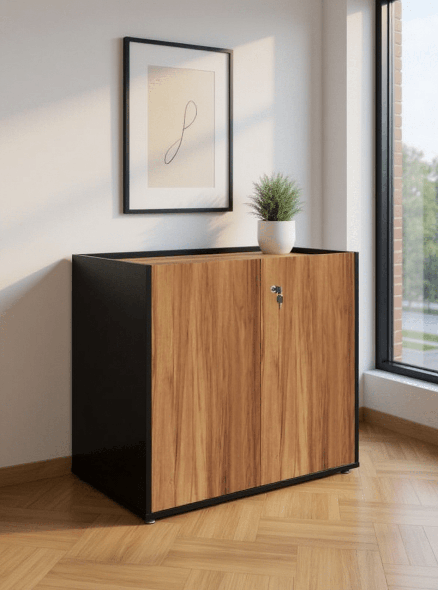 O Armário Baixo 2 Portas Nogal e Preto une praticidade, segurança e design contemporâneo. Seja para organizar documentos ou complementar a decoração do escritório, ele é a escolha perfeita para quem busca funcionalidade e elegância em um só móvel.