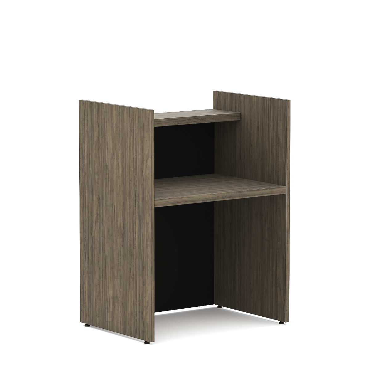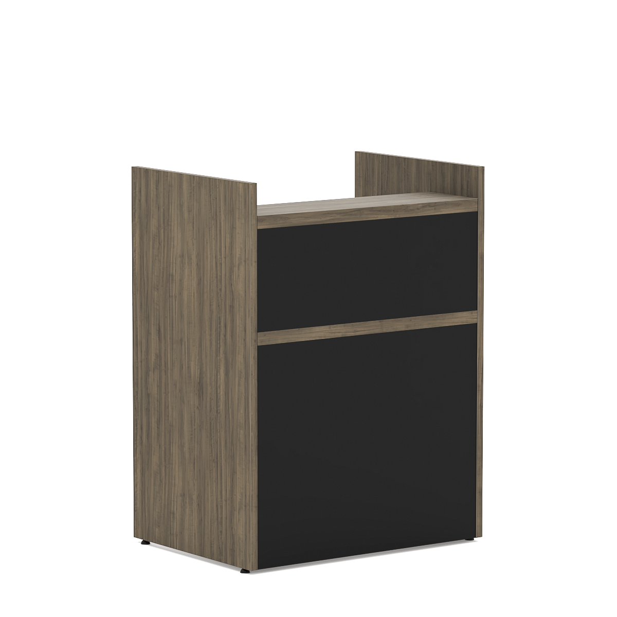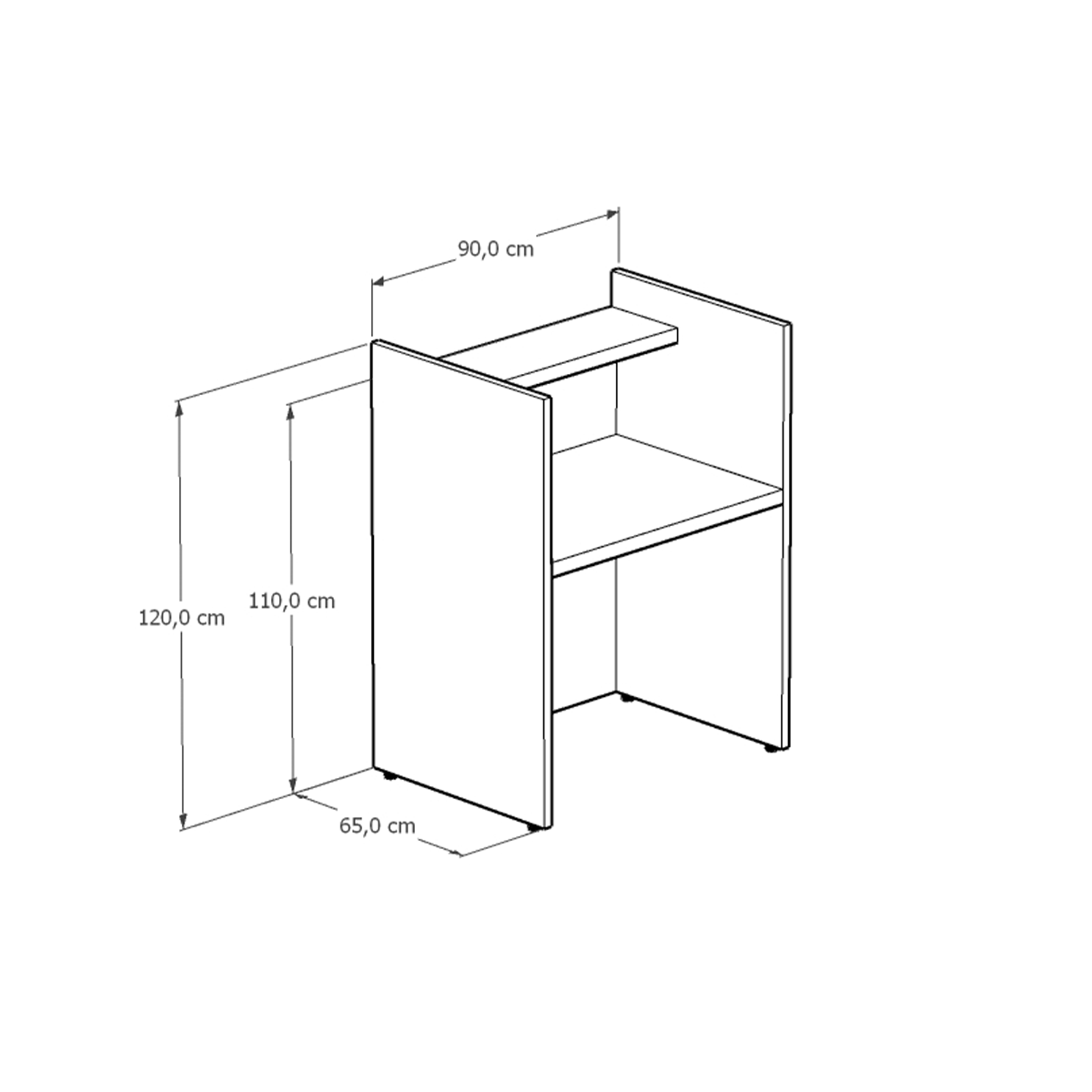 Balcão de atendimento recepção Prius com tampos confeccionados em fibra de madeira aglomerada de média densidade (MDP) com 40 mm de espessura. Acabamento em ambas as faces, com laminado melamínico de baixa pressão (BP). O mesmo é produzido com sistema de engrossuramento com pinos em aço zincado 35 mm (compr.) x 1 mm (esp.) para fixação das travessas, sendo assim as travessas são encabeçadas com fita borda PVC 0,45mm em todos os topos aparentes. O tampo é encabeçamento em todos os topos com fita borda PVC 1 mm. Painéis laterais em MDP 25 mm. Acabamento em ambas as faces, com laminado melamínico de baixa pressão (BP). Encabeçamento em todos os topos com fita borda PVC 0,45mm. Painel Frontal em MDP 15 mm, todos revestidos com laminado melaminico de baixa pressão (BP) em ambas as faces. Sistema de fixação (montagem) é feita através de encaixes com o sitema minifix, facilitando a montagem e desmontagem da mesma sem danificar o produto. Conjunto de bucha e sapata niveladora em polipropileno injetado e haste metálica com regulagem através de rosca 5/16.