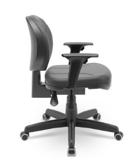 Equipada com mecanismo Back System, oferece regulagem de altura do assento, ajuste do encosto por alavanca lateral e regulagem de altura do encosto por catraca, garantindo ergonomia personalizada para diferentes biotipos. Os braços reguláveis com ajuste frontal por gatilho completam o conforto, permitindo adaptação ideal à mesa e ao usuário.
