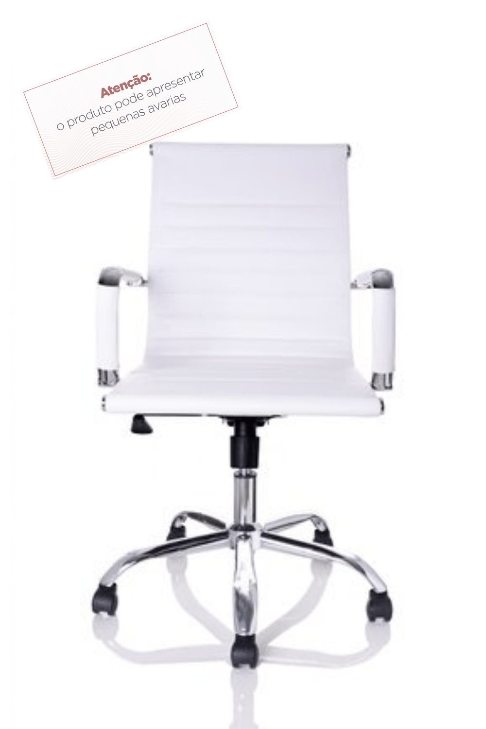 • Braços: Fixos cromados com apoio estofado em couríssimo PU branco