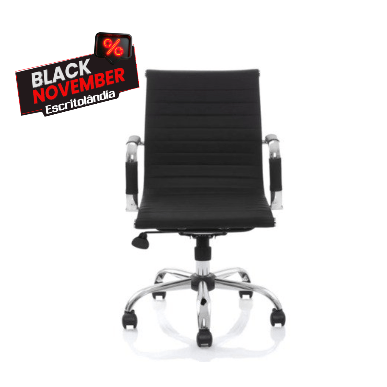 A Cadeira Diretor Preta – Couríssimo PU com Base Cromada oferece o equilíbrio ideal entre estilo, conforto e funcionalidade.