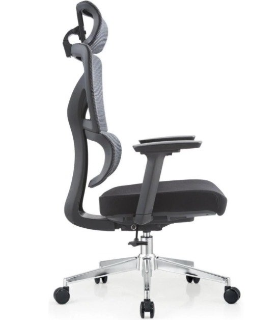 A base metálica cromada adiciona resistência e sofisticação, enquanto os braços 3D ajustáveis e os rodízios em PU garantem praticidade, mobilidade silenciosa e estabilidade em qualquer tipo de piso.