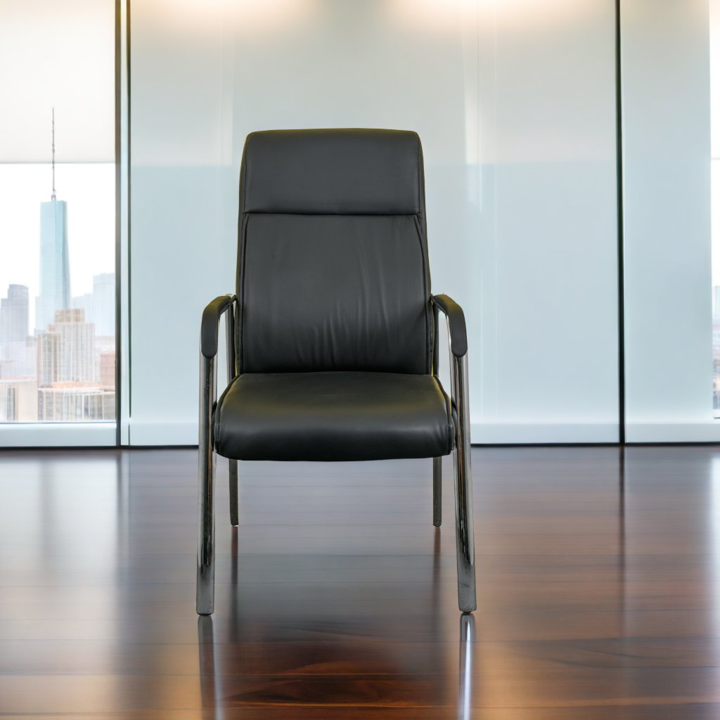 A Cadeira Fixa Partner Preta - Braços Cromadosa foi desenvolvida para oferecer sofisticação, conforto e presença em escritórios, salas de reunião e ambientes corporativos. Seu design minimalista e imponente transmite elegância, enquanto a estrutura robusta garante resistência e funcionalidade no dia a dia.