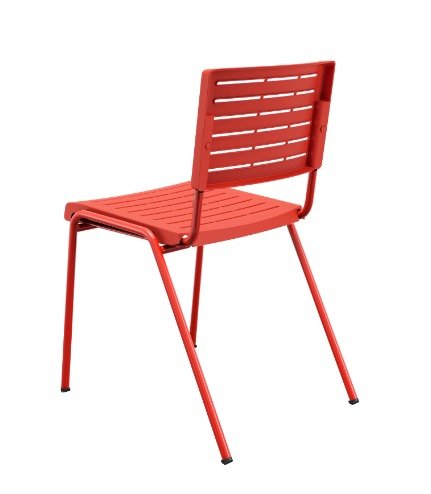 Com assento e encosto em termoplástico de alta durabilidade, proporciona conforto, fácil manutenção e ventilação adequada. Sua estrutura metálica pintada em vermelho garante estabilidade, robustez e longa vida útil, mesmo em locais de uso intenso.