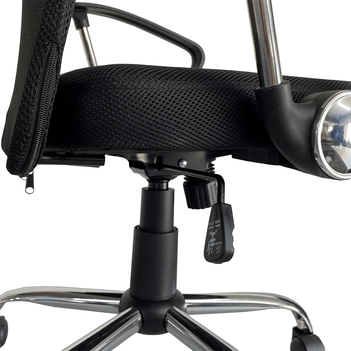 • Conforto ergonômico: encosto reclinável em tela para ventilação e apoio ideal.