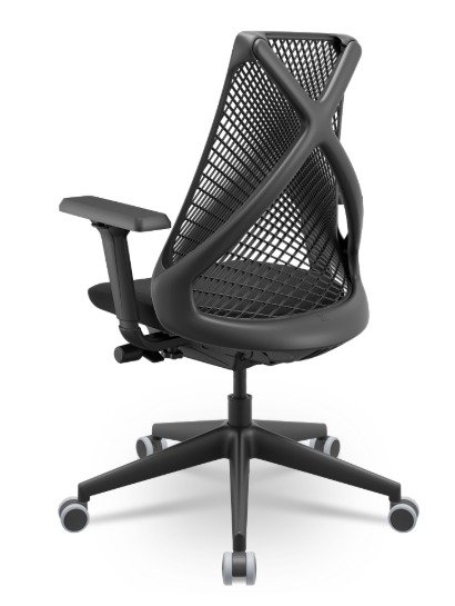 • Encosto em tela com suporte estrutural em X: ventilação e ergonomia
