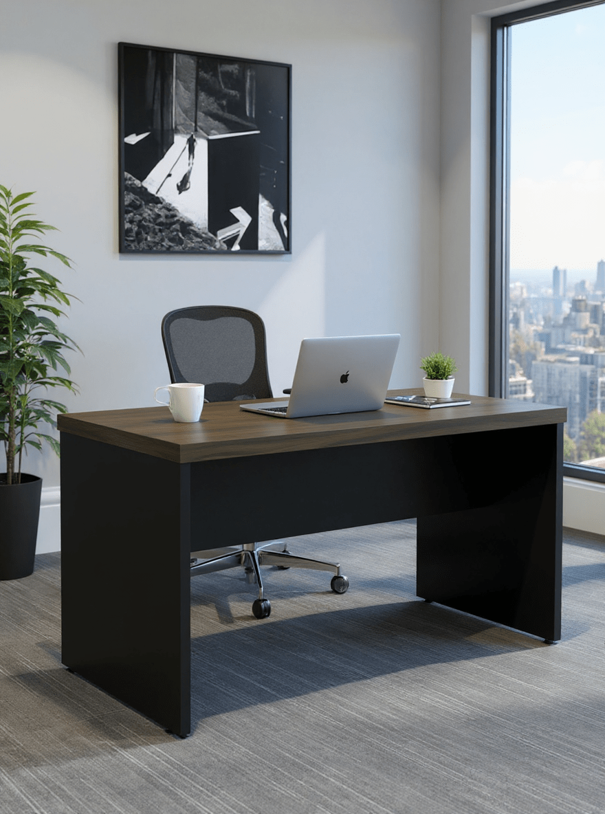 Ideal para escritórios corporativos, consultórios e home office, a mesa oferece espaço amplo para computador, documentos e materiais de trabalho, proporcionando conforto e produtividade no dia a dia.