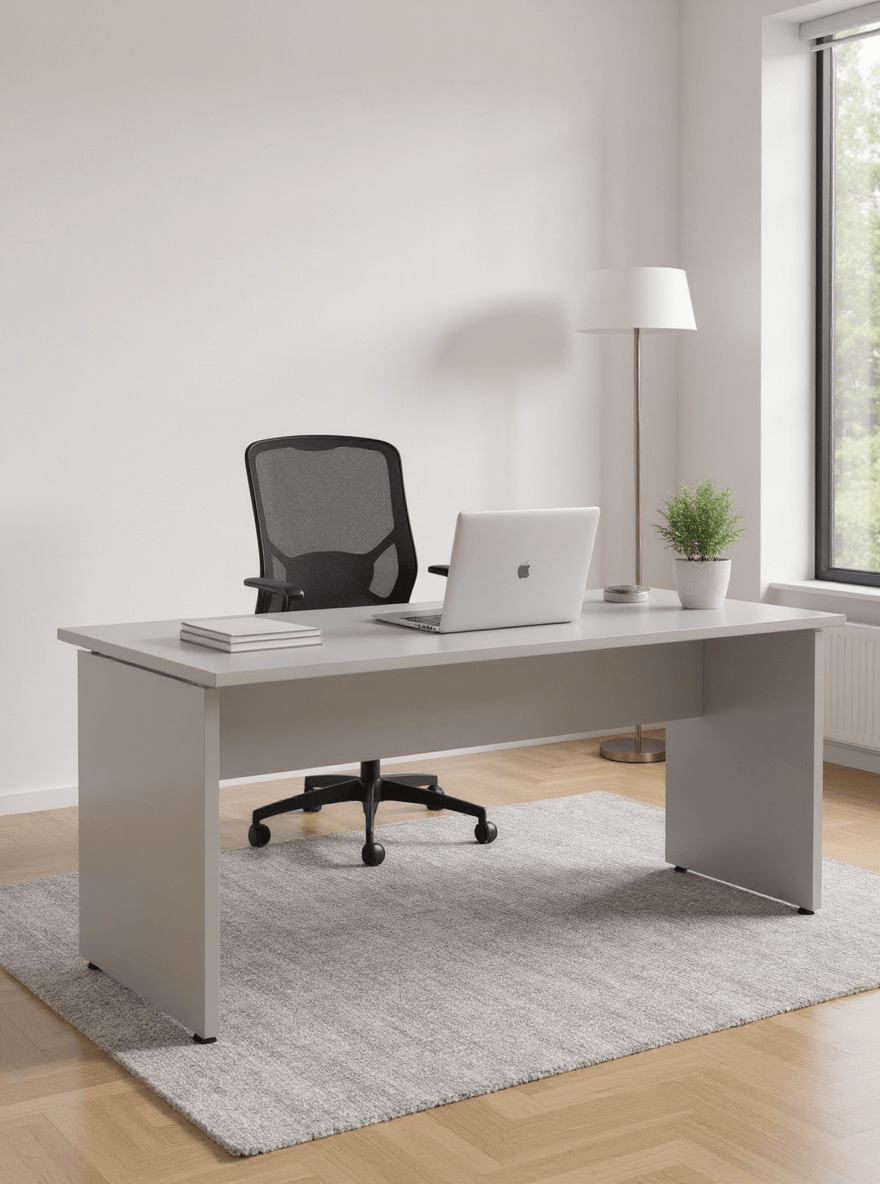 A Mesa de Escritório Cinza une praticidade e estilo em um móvel robusto e moderno, ideal para escritórios, home offices e ambientes corporativos. Produzida em MDP de alta qualidade, ela garante durabilidade e um acabamento sofisticado.