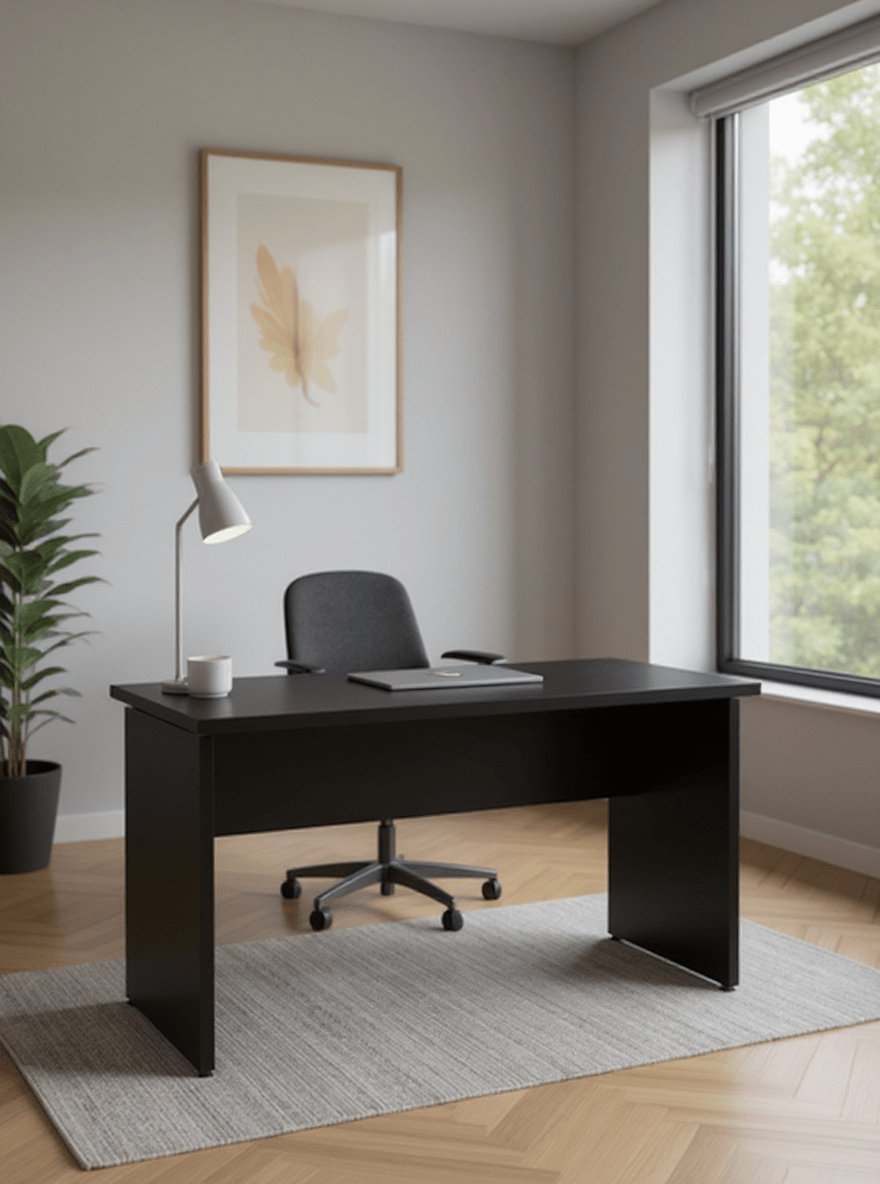A Mesa de Escritório Preta – Compacta e Funcional é perfeita para quem deseja funcionalidade, durabilidade e elegância em um único móvel. Seu tamanho compacto se adapta a espaços menores sem perder a robustez e o estilo, tornando o ambiente mais prático e sofisticado.