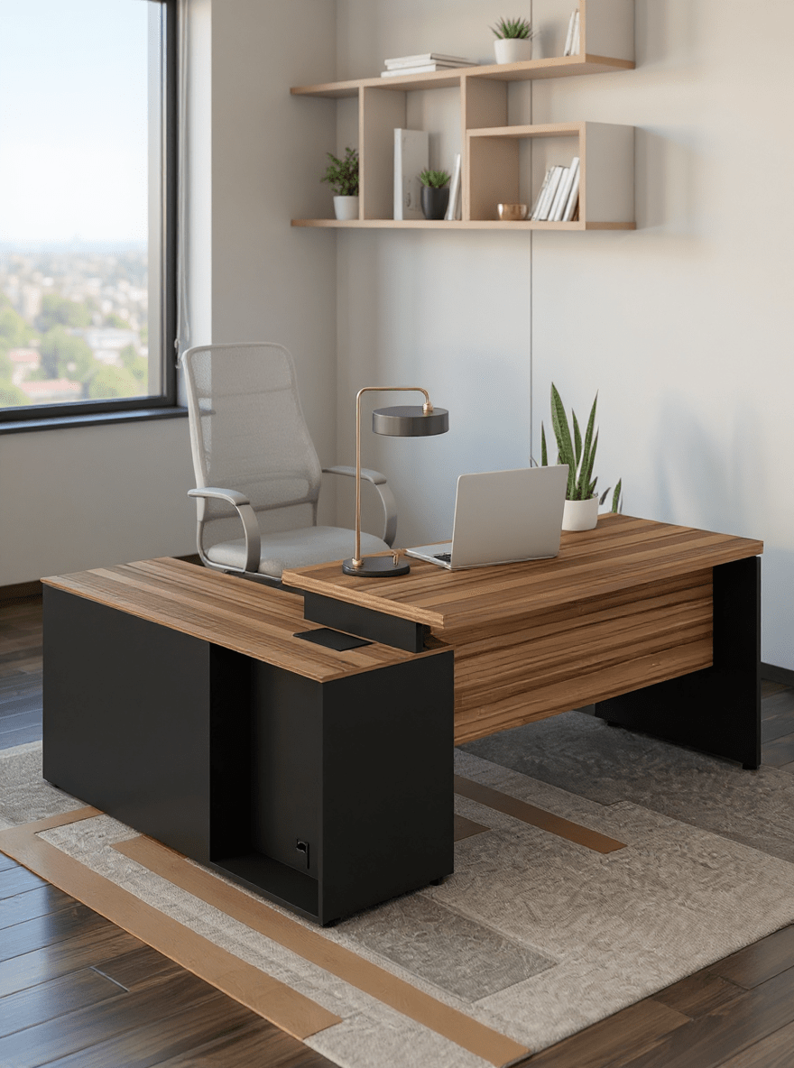 Transforme seu ambiente de trabalho com praticidade, sofisticação e alta performance. A Mesa Diretor Dinâmica com Armário Lateral é a escolha ideal para escritórios modernos que buscam unir design, ergonomia e funcionalidade em um único mobiliário.